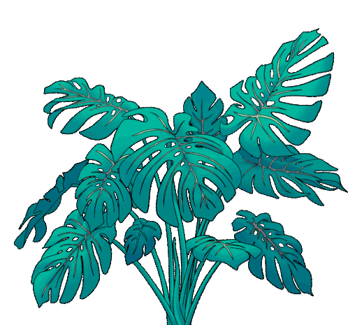 An animated Monstera plant sticker featuring vibrant teal-green leaves gently swaying, perfect for adding a touch of tropical greenery.