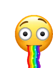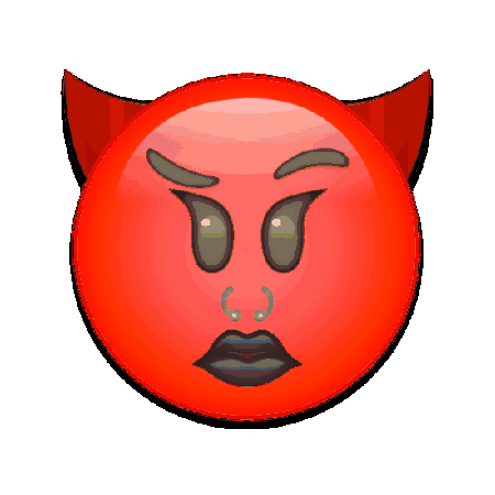 A vibrant purple devil emoji spewing a rainbow transitions to a grumpy yellow cat emoji giving the middle finger with censored speech.
