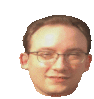 A pixelated, rotating face of Moonmoon wearing glasses, perfect for expressing a unique mood or meme reference.