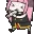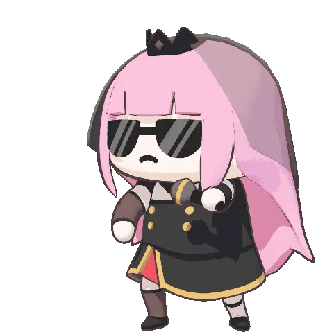 Mori Bbg, a cute pink and purple cartoon character with a pacifier, happily bounces up and down.