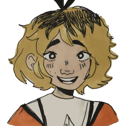 A close-up animated sticker of Mouse Kid, also known as Cathy Anne or Elodie, from the Doomsday RPG, smiling happily.