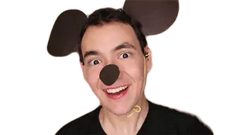 A large cartoon mouse sits at a computer, using a small, distressed man as its computer mouse, turning the tables.