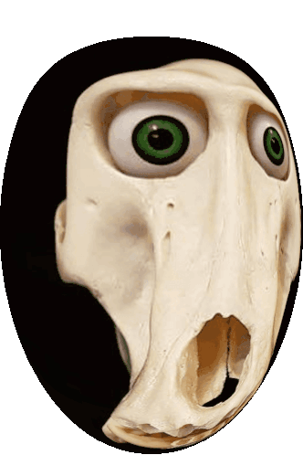 An animated sticker featuring Mr Bones, a stylized skull character, bouncing playfully. It has a distinct hole and green eyes, adding to its unique charm.