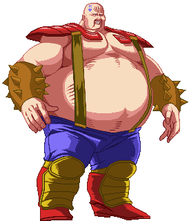 Mr Heart, the large, formidable character from Fist of the North Star, depicted in pixel art, ready for action.