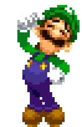 Mr L Luigi, the iconic character from Mario Madness, animatedly gives the middle finger, expressing a defiant mood.