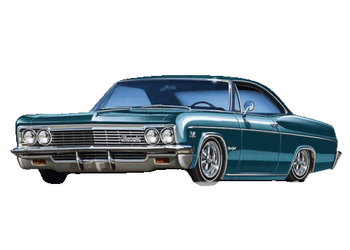 a drawing of a blue impala car on a white background