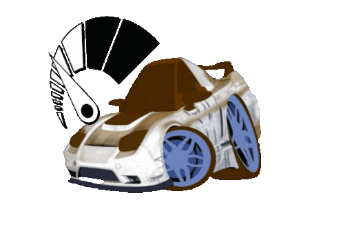 Mr24hrs's stylized Acura NSX car with blue rims and a speedometer indicating increasing speed.