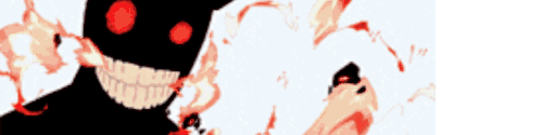 Mu Deok Ki, a black shadowy monster with glowing red eyes and a wide, menacing smile, appears against a fiery, blood-splattered background.