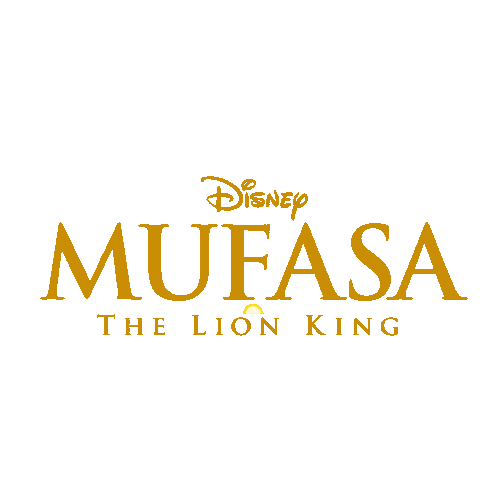 The official Disney Mufasa The Lion King logo, featuring a dynamic sun animation behind the title.