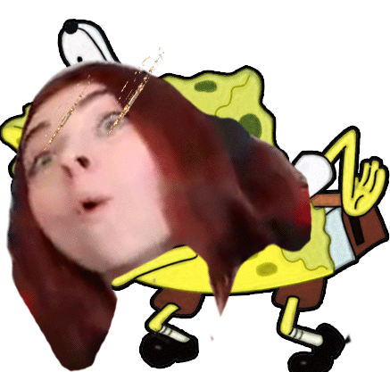 Mocking Spongebob with a human face and Goofy hat, shooting powerful laser beams from its eyes, part of the Mushu Clan.