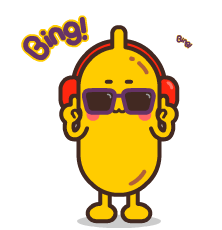 A cool animated banana wearing sunglasses and headphones, vibing to music with a 'Bing!' pop.