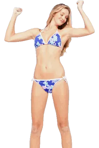 Teresa Mendez, a strong athlete, flexes her bicep and winks, showing off her physique with a confident smile.