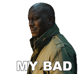 Tyrese Gibson as Roman Pearce from Fast & Furious says "My Bad" with a regretful expression.