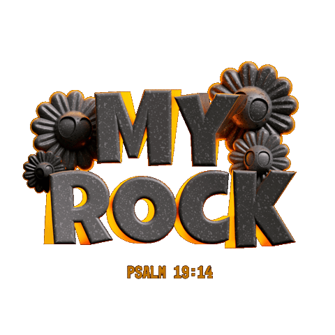 a sign that says " my rock " with flowers around it