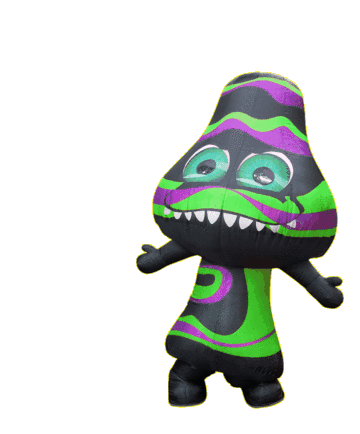 Animated sticker featuring the Myxedup Mushroom character, a vibrant black, green, and purple mushroom with big eyes and a smile.