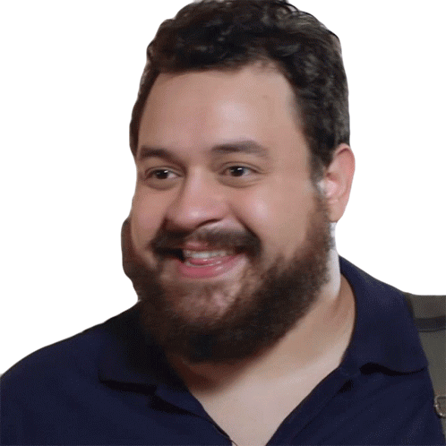 Estevam Nabote from Porta Dos Fundos smiles and then makes a funny, tongue-out expression.