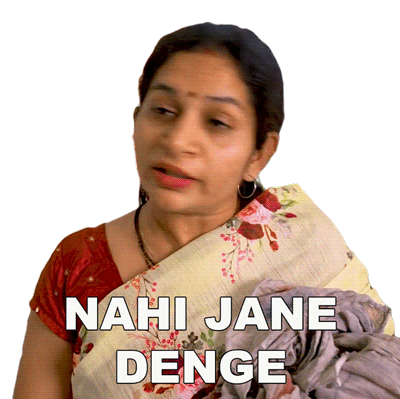 Sayali Sonule, dressed in a saree, emphatically states 'Nahi Jane Denge' (Will not let go) in this animated sticker.