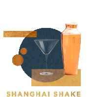 An animated logo featuring a cocktail shaker pouring an orange drink into a martini glass, with 'Shanghai Shake' text, evoking Filipino food nostalgia.