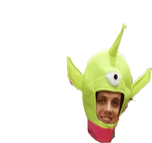 A purple alien character with a large brain and hoop earrings licks its lips, expressing 'Ñam' (yum).