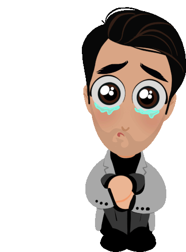 a cartoon of a man kneeling down with tears running down his face