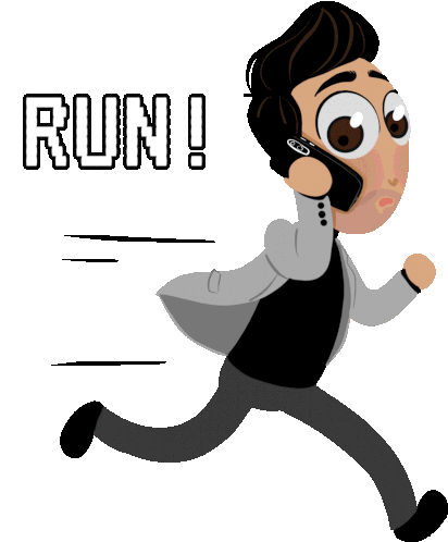 Nassertone ناصر is seen running urgently while talking on his mobile phone, with the word 'RUN!' appearing in pixel art. A busy YouTuber on the go.