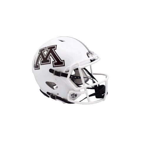 A white football helmet featuring the iconic brown 'M' logo of the Minnesota Golden Gophers, representing NCAA college football.
