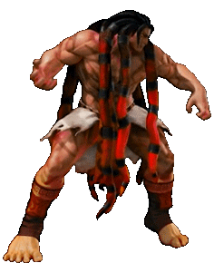 A powerful Necalli from Street Fighter V, a muscular fighter with distinctive red and black dreadlocks, stands ready for battle.