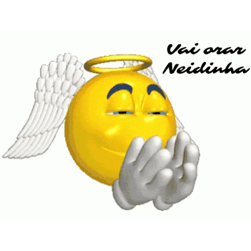 Neidinha, an angel emoji, in a praying pose with the text 'Vai orar Neidinha'. A spiritual and encouraging sticker.