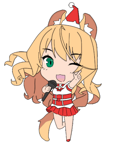 Nekopara's Maple, a cat girl, dressed in a Christmas outfit, sings and dances with a microphone.