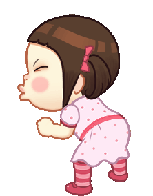 Neneng Gesrek, a cute cartoon girl, wiggles her hips and blows a kiss with puckered lips and rosy cheeks.