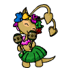 A Neopets Aisha character, dressed as a hula dancer with a flower crown, happily shakes maracas.