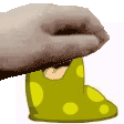 A hand gently pets a cheerful yellow polka-dotted Slorg, a beloved Neopets Petpet, showing affection.