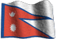 The distinctive national flag of Nepal, featuring its unique non-quadrilateral shape, waves gracefully in the wind.