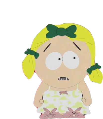 a cartoon girl with yellow hair and a green bow on her head