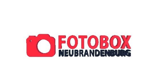 Animated sticker featuring the 'FOTOBOX NEUBRANDENBURG' logo with a prominent red camera icon.