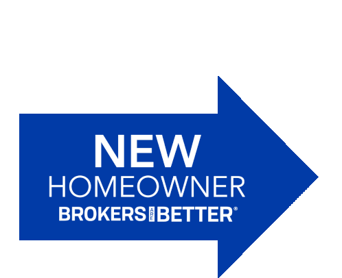 A blue arrow sticker featuring the text 'NEW HOMEOWNER BROKERS ARE BETTERĀ®', ideal for real estate and mortgage professionals.
