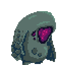 Animated pixel art creature from the Kingdom game series, featuring a grey body and glowing pink eyes.
