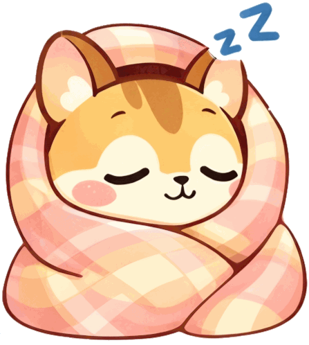 a cartoon drawing of a dog wrapped in a pink plaid blanket with a zzz sign above it
