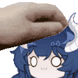 An adorable anime Vtuber girl with horns receives a gentle head pat with a donut, set against a night theme.