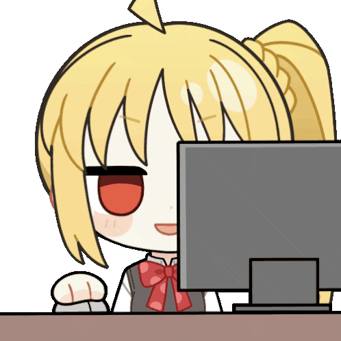 a cartoon girl is looking at a computer screen