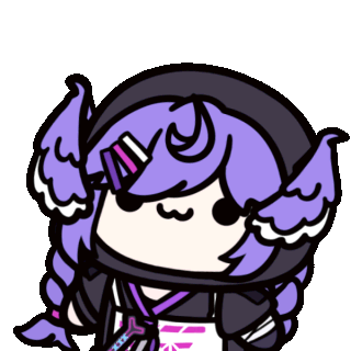 A cute chibi-style Nijisanji character sticker, featuring purple hair and a dark hooded outfit with accents.