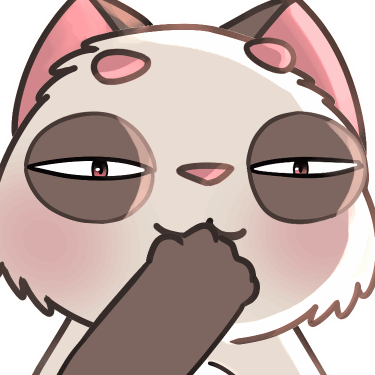 Nina Minina, a cute cartoon cat, shyly covers its mouth with a paw, expressing a 'hehe' or embarrassed reaction.