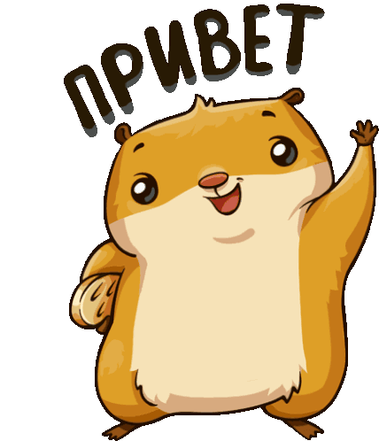a sticker of a hamster that says привет on it