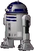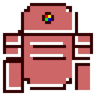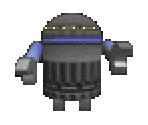 a pixel art drawing of a robot with a blue stripe on it 's chest .