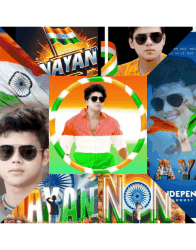 Animated sticker featuring the name Nayan with Indian flag motifs and Independence Day celebrations.
