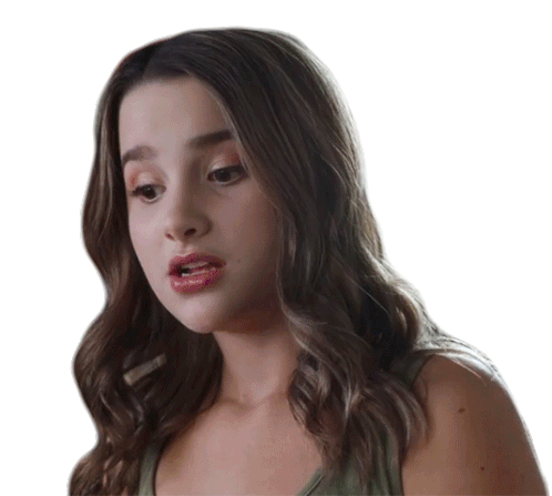 Annie Leblanc from Brat TV's Chicken Girls shows a thoughtful frown, conveying "No Comment" or "No Idea" with a pensive expression.