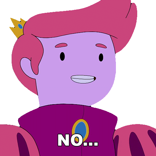 Dulce Príncipe, a character from Adventure Time, says "No" with a clear expression of refusal.