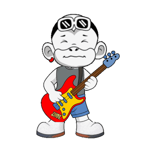 a cartoon of a man holding a guitar that says zhuz on it