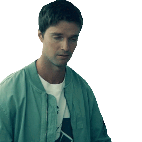 Patrick Schwarzenegger as Golden Boy from Gen V gives a firm 'no' or 'never' with a serious expression.