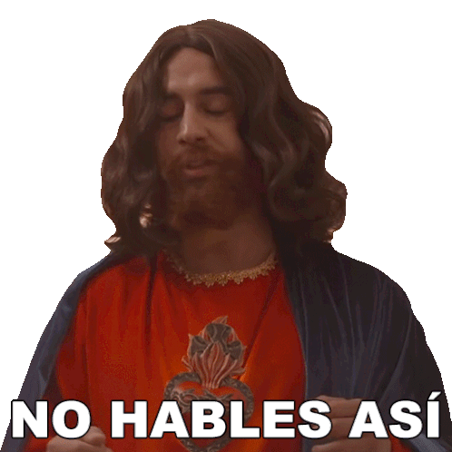 Daniel Tovar, dressed as Jesus, gestures with his hands while saying "No Hables Así" (Don't Talk Like That).